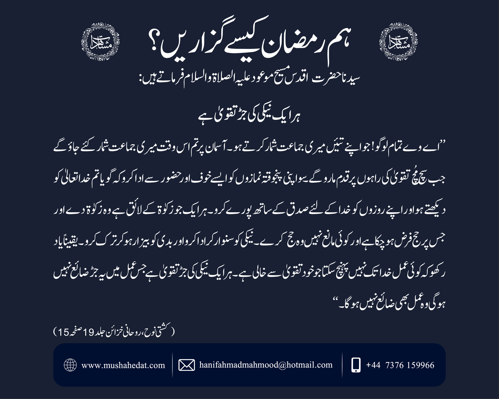 مزید پڑھیں30دروس بابت رمضان المبارک2025ء(حصہ دوم)