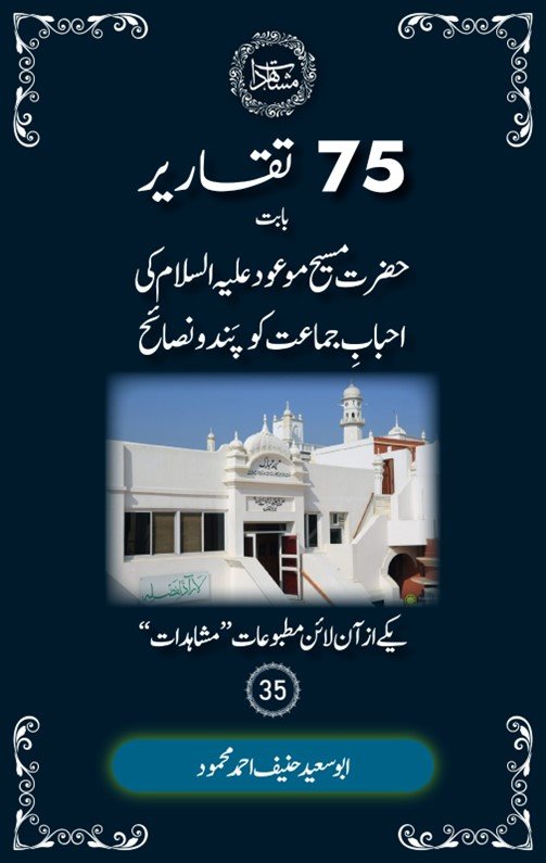 اللہ تعالیٰ ہم سب کو اور ہماری نسل در نسل کو اِن خزانوں سے بھر پور فائدہ اٹھانے کی توفیق دے۔ یہ75تقاریر کا مجموعہ اپنے فیوض کو آگے پہنچانے کا ذریعہ ہو ۔ آمین
